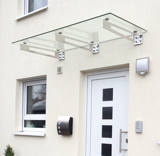 In der Standardausführung ist der Rahmen in Edelstahl matt gebürstet. Sie können Ihr formschönes Vordach aber auch für farbliche Akzente nutzen. Wir pulverbeschichten Ihnen den Rahmen in jeder beliebigen RAL-Rarbe.