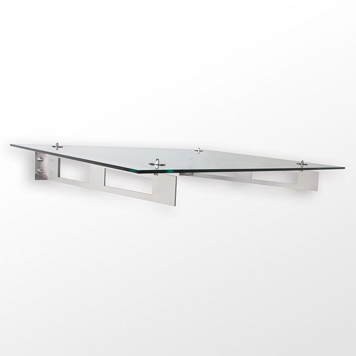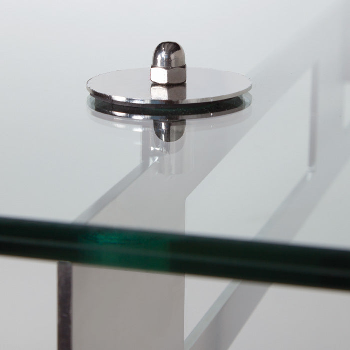Konsolen in Ausführung Edelstahl (1.4301), im Vollbad gebeizt und elektrolytisch poliert. Somit ist ein optimaler Korrosionsschutz gewährleistet. Die Verglasung besteht aus Verbundsicherheitsglas (VSG/TVG).